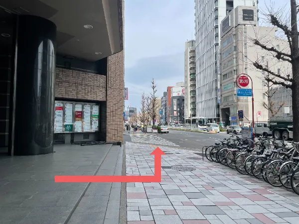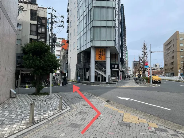 4. 中央郵便局が見えたら、右折して交差点を渡ります。