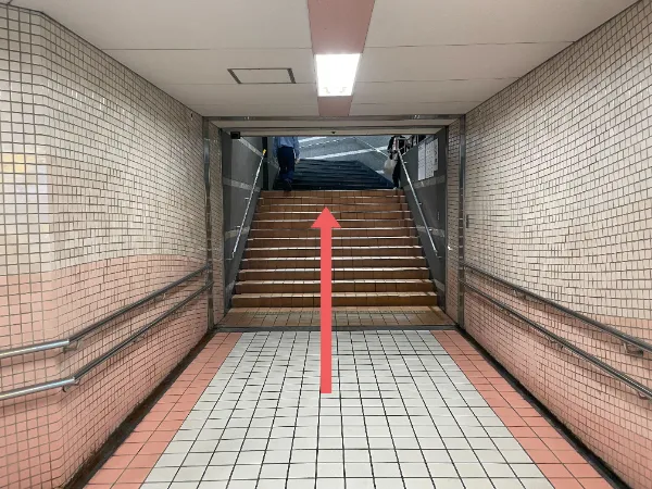 3. 直進すると改札が見えるので、右折して階段を下ります。