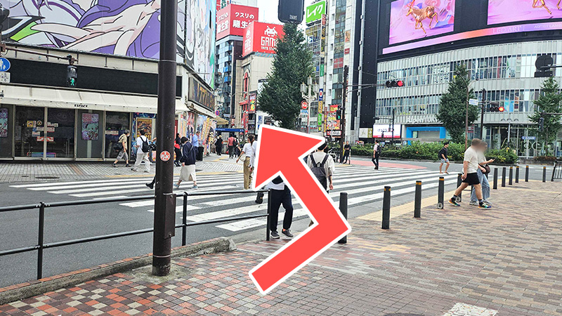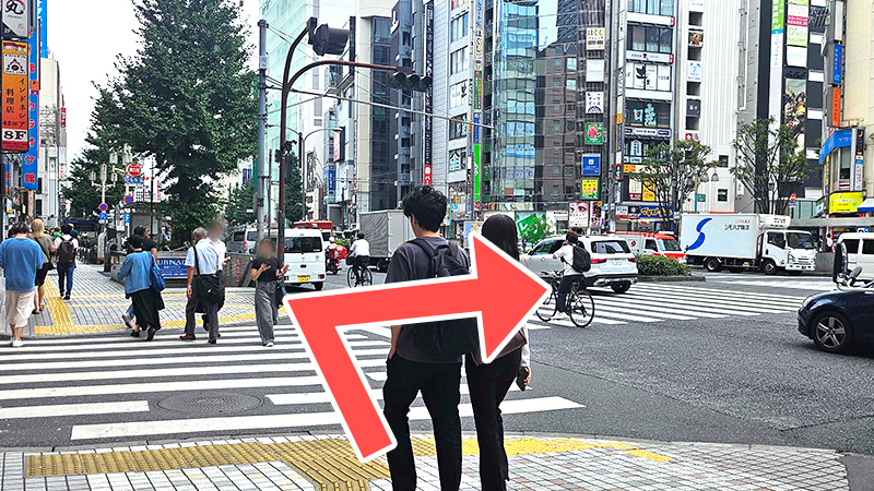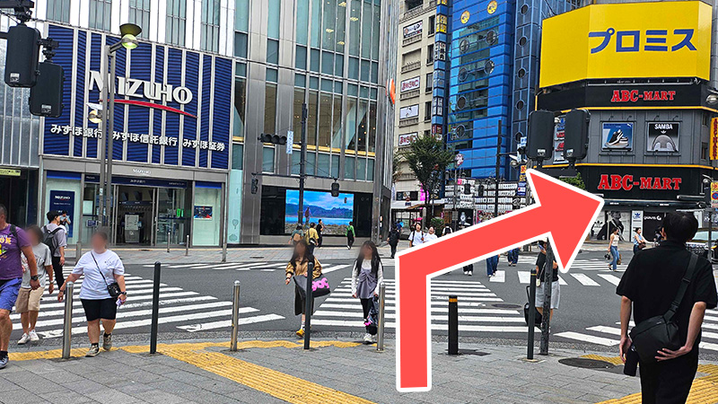 5. 「みずほ銀行」の前の横断歩道を斜めに渡ります。