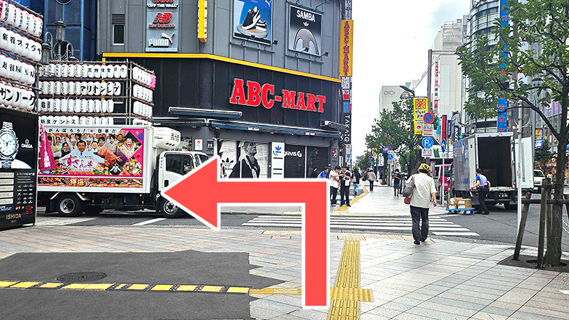 6. さらに横断歩道を渡り「ABC-MART」の手前で左折します。