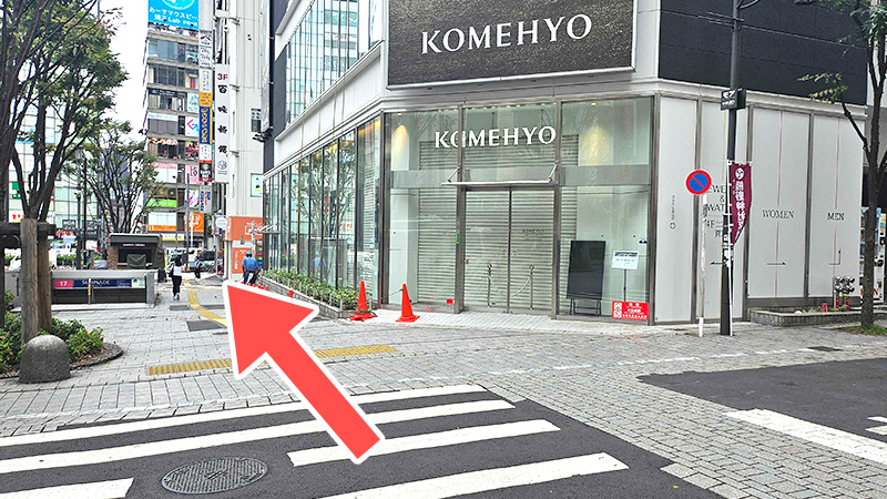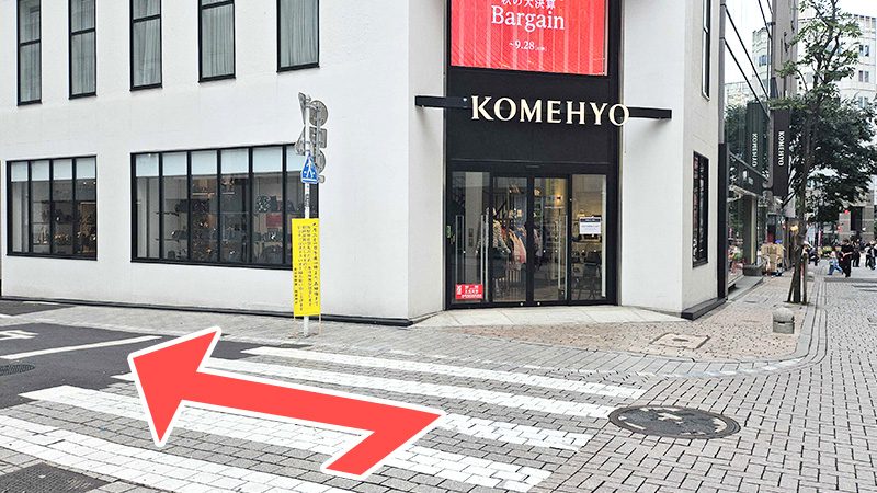 7. 「KOMEHYO」の手前の横断歩道を渡ります。