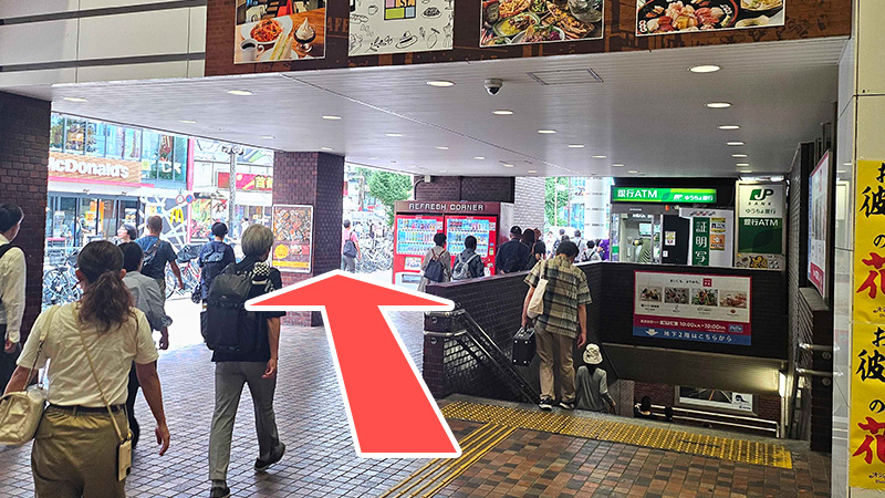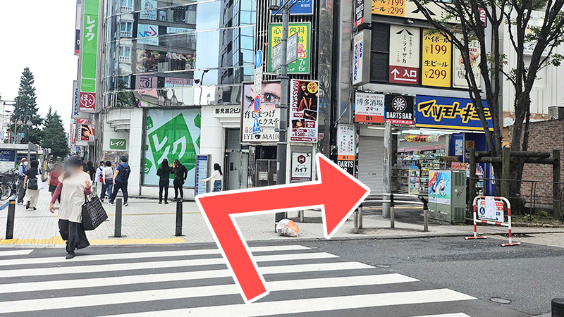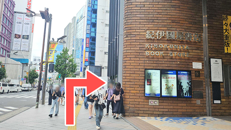 3. 地上へ出て右に進み「紀伊國屋書店」の奥の道を右折します。