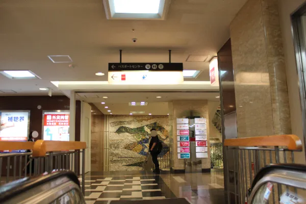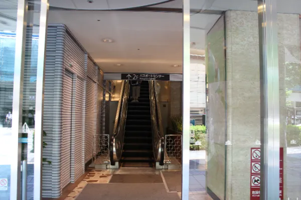 6. 建物の中に入り「2F旅券センター」のエスカレーターで2階に上がります。