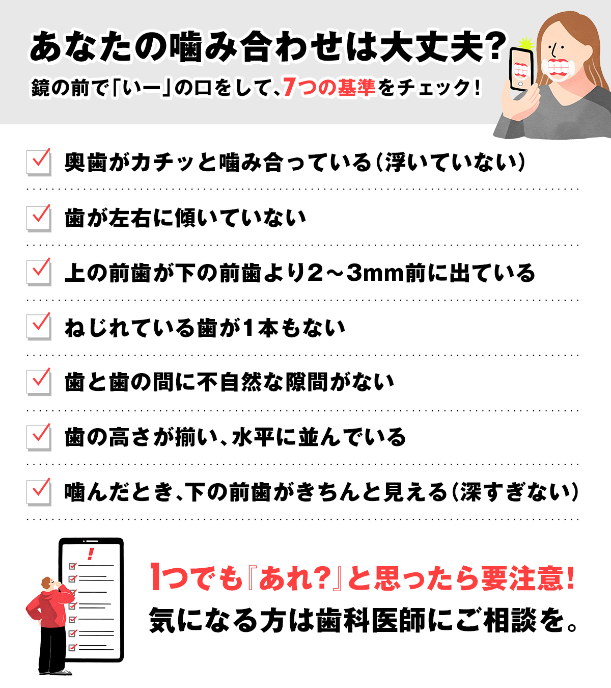 - あなたの歯並びはマウスピース矯正が必要?噛み合わせの7つのチェックポイント