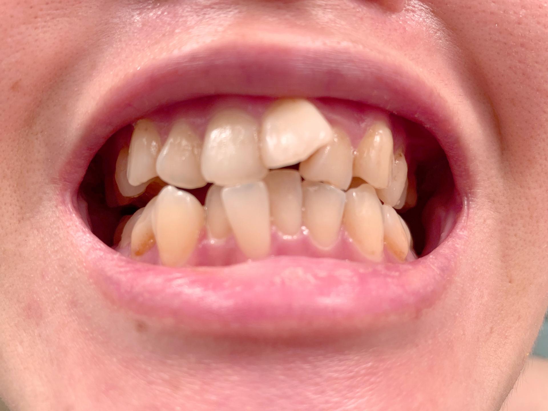 噛んだときに上下の歯の中心がまっすぐ揃わない場合は、正中のずれが生じているといえます。