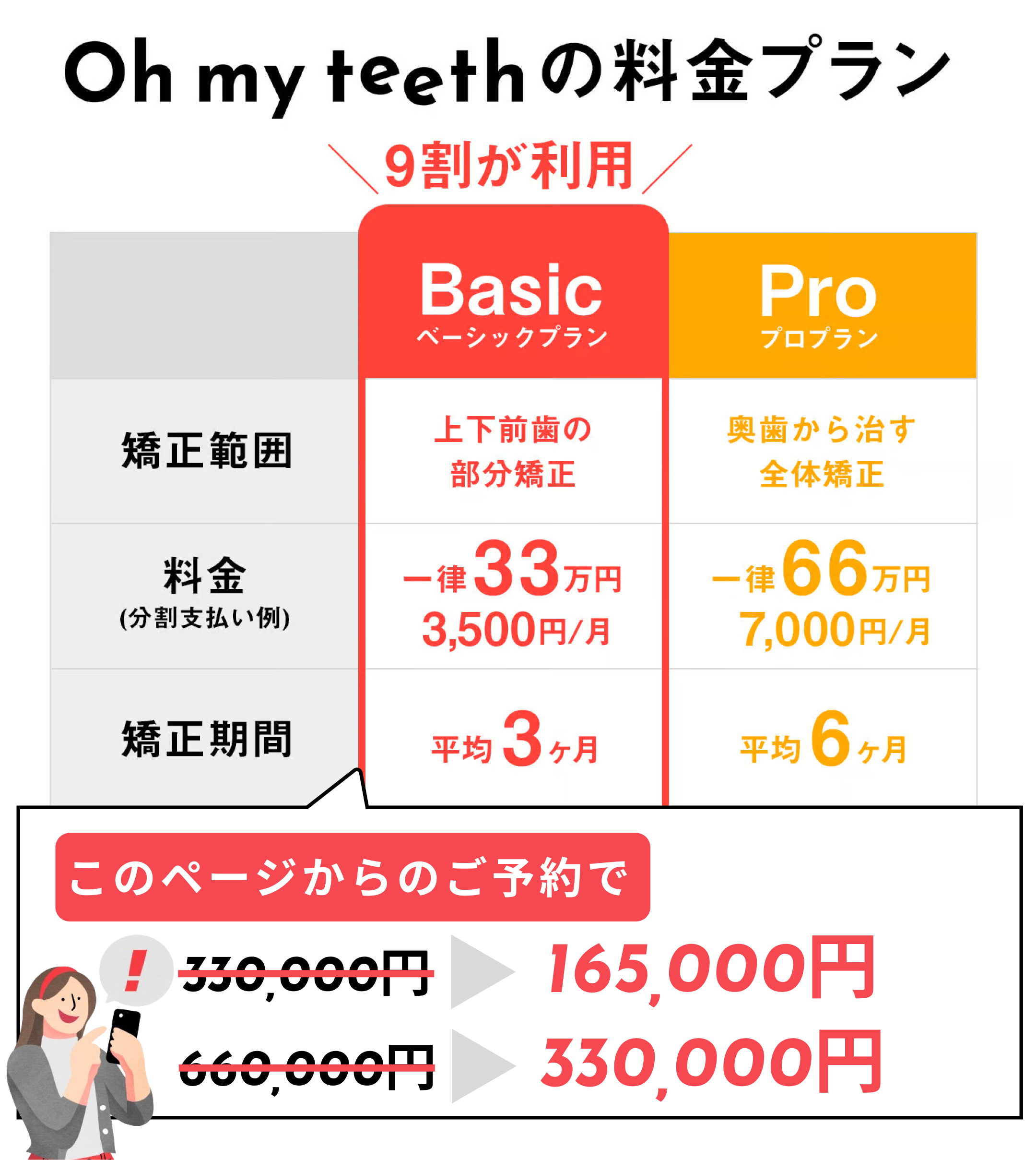 矯正プランは2つで、いずれも追加費用は原則かかりません。