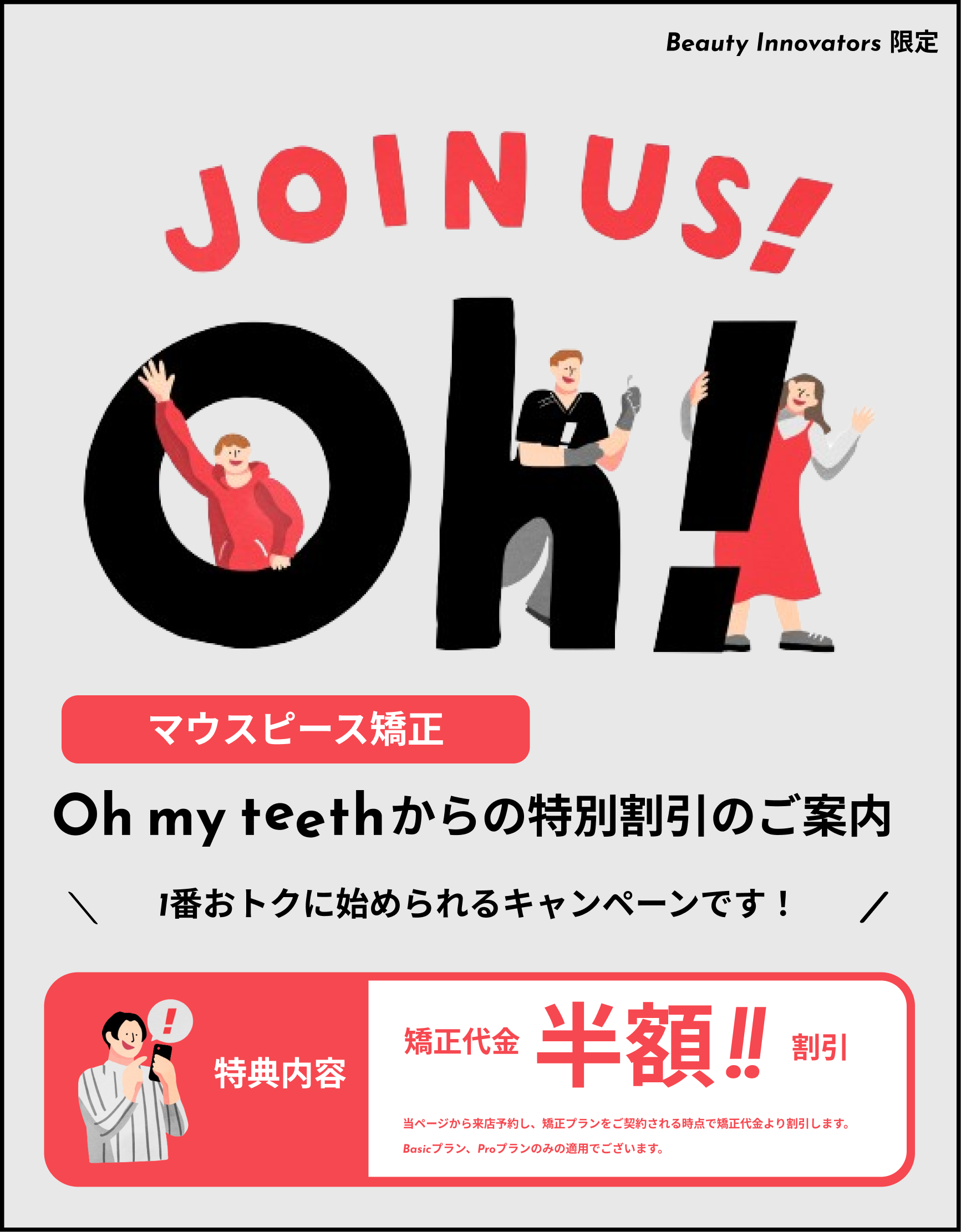 この度、Oh my teethからBeauty Innovatorsにご参加のみなさまへ特別な矯正プランをご用意しました。