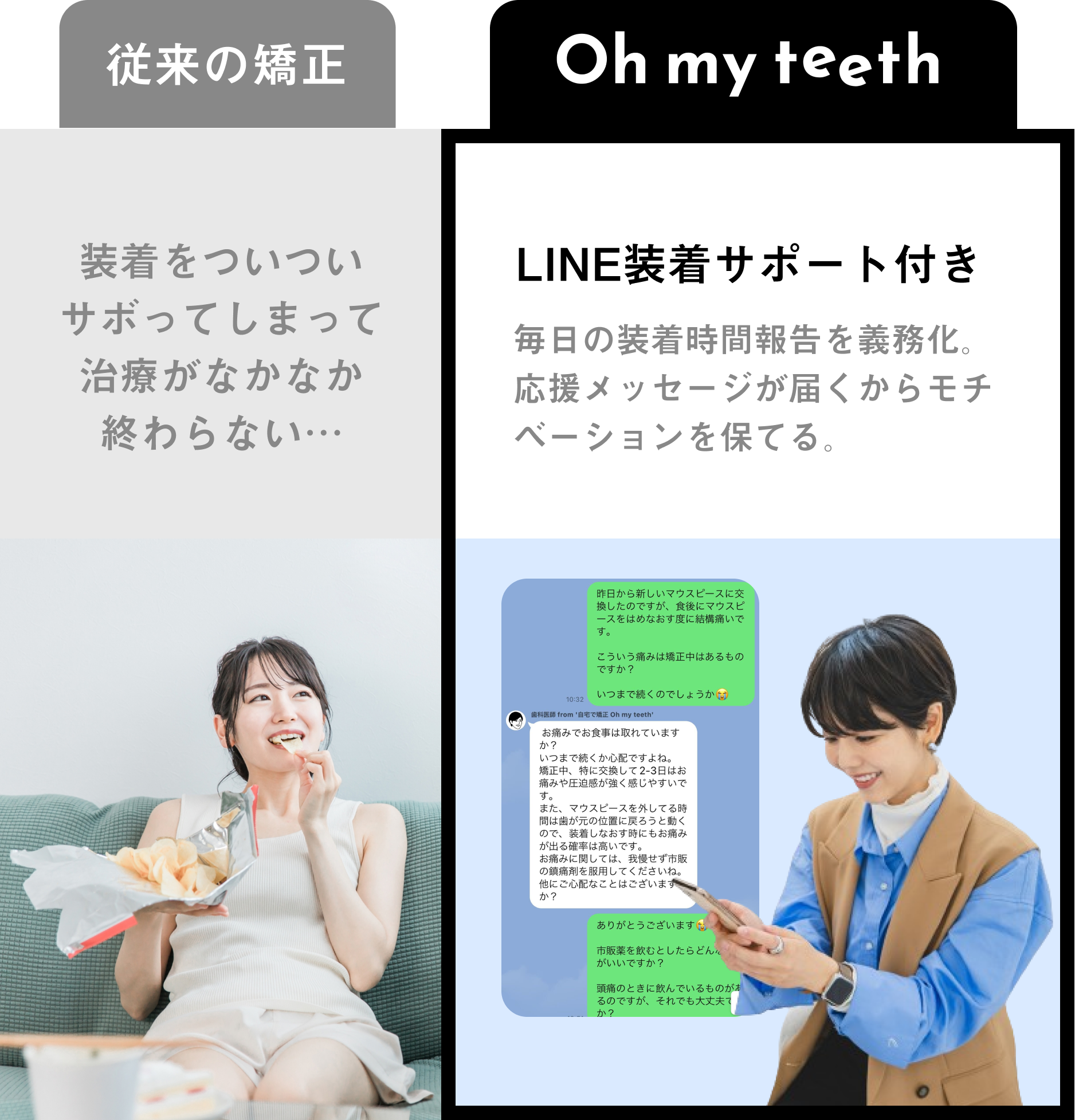 『はじめる前は矯正を継続できるか不安だったんですが、毎日LINEで通知がくるので意識的に続けることができました🙆』