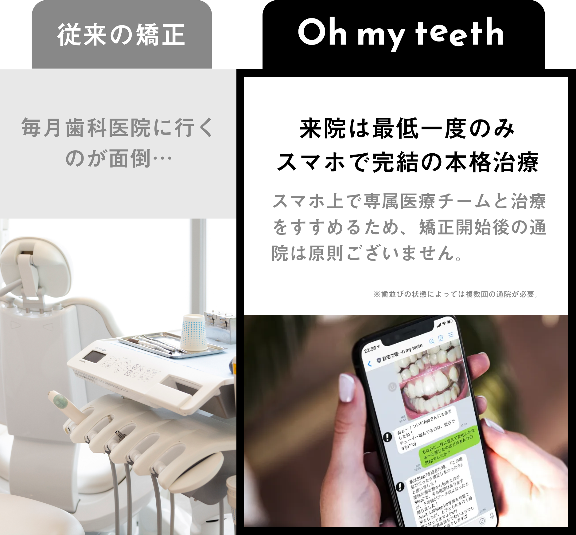 その点、Oh my teethは最初の検査に来ていただければ、その後の定期通院は原則不要