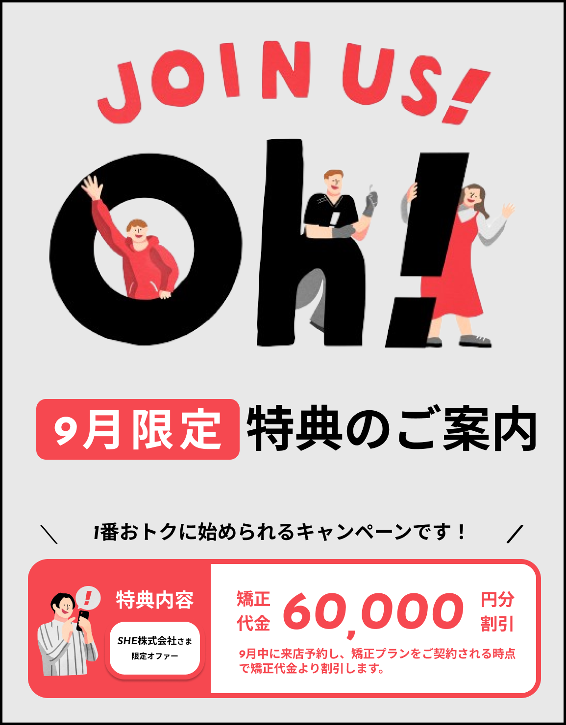 【SHE株式会社さま限定】マウスピース矯正 Oh my teeth 9月限定特典のご案内