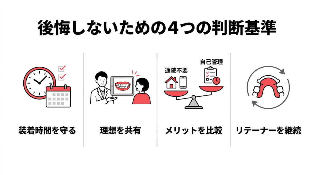 Oh my teethで後悔しないために大切なのは、「自分が矯正生活を続けられる前提がそろっているか」を始める前に整理しておくことです。