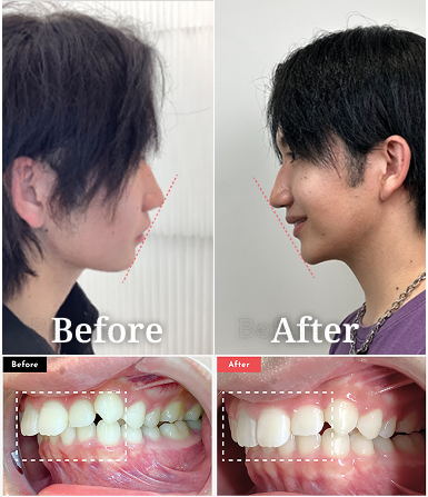出っ歯の矯正では、前歯が後方に下がることで口元の突出感が減り、横顔の印象が変わりやすいのが特徴です。
