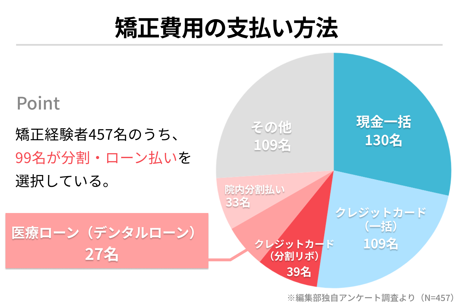 対象:過去に矯正治療を受けた方457名のうち、分割払いをした99名