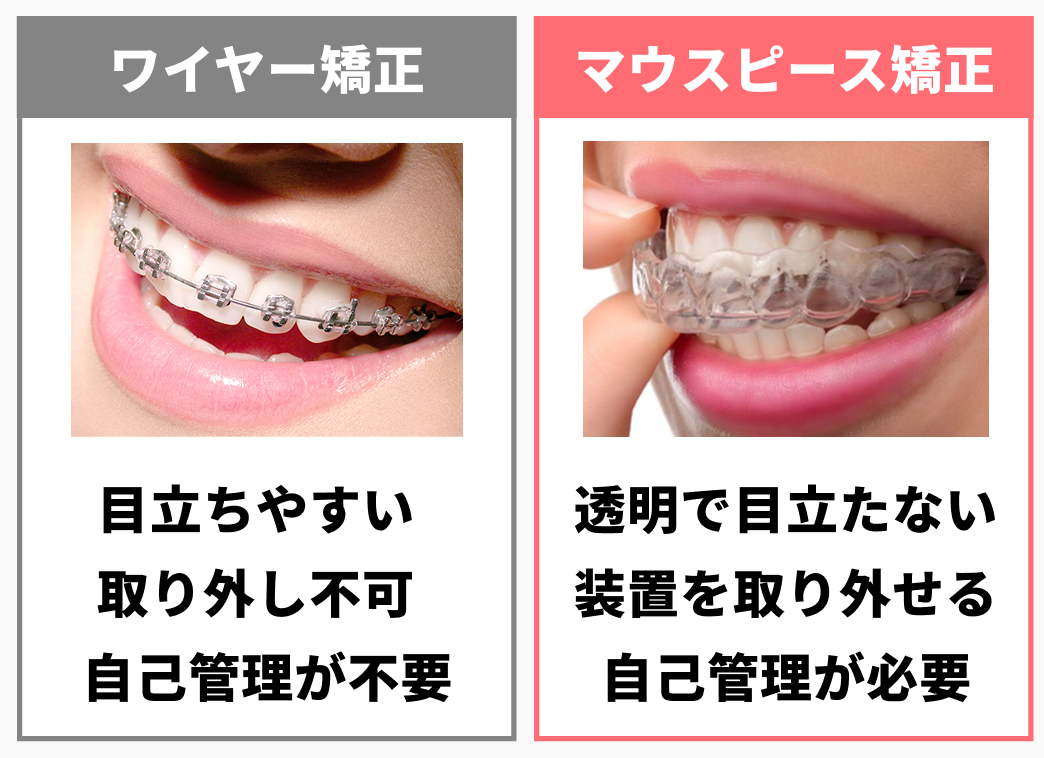 - マウスピース矯正とワイヤー矯正、