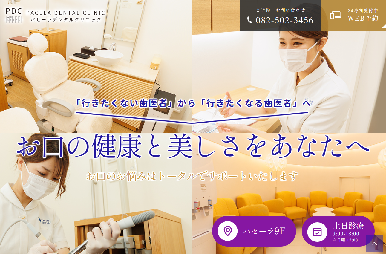 パセーラデンタルクリニックは基町クレド「パセーラ」9Fにあり、土日も診療のホワイトエッセンス加盟院。審美・予防まで口元の美しさをトータルにサポートします。