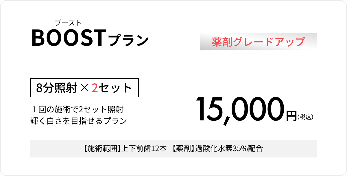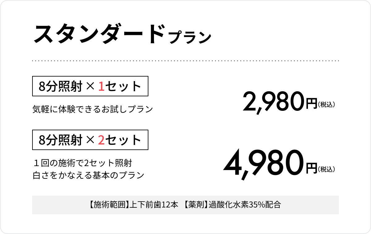 目標の白さに合わせて薬剤・照射回数の調整ができるため、ご安心ください。